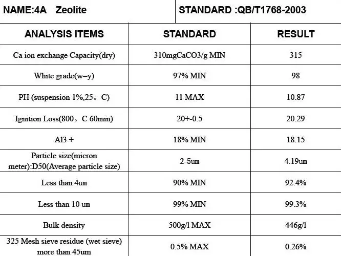 PORDUCE NAME : 4A ZEOLITE